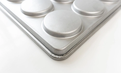 Пекарские противни изготовлены из алюминизированной стали методом глубокой вытяжки из одного листа. Они имеют бесшовную конструкцию без углов и просты в очистке. Формы для булочек обладают гладким изогнутым дном, а также могут быть изготовлены с дополнительными арочными профилями для максимального контакта с тестом. Это позволит выпекать плоские и одинаковые булочки, которые сохраняют свою форму. Для лучшего отделения от формы и превосходного внешнего вида выпечки доступны варианты с высококачественным антипригарным покрытием, включая PFA (около 3000 циклов использования) и экономичный Teflon (около 1500 циклов использования).