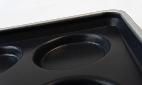 - Мы обладаем собственными линиями для нанесения покрытий, а также предлагаем разные варианты покрытия для стабильных антипригарных свойств противней для выпечки.