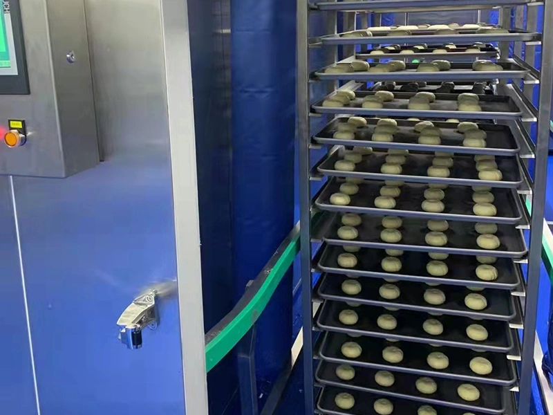 - Система оснащена инновационным механизмом с боковыми крючками. В зависимости от времени расстойки, система автоматически перемещает тележку, значительно снижая трудозатраты.